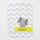 A modern gray yellow chevron pattern and a cute elephant illustration is featured on this custom baby burp cloth. Easily personalize with a child's name. Makes a great gift for a boy baby shower.
