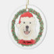 Make the nice list this year with a personalized Christmas ornament of your sweet Great Pyrenees elf in a santa hat and red and green holly wreath!