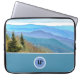 This personalized laptop sleeve features a stylized image of Newfound Gap in the Great Smoky Mountains National Park, a beautiful mountainous park spanning between Cherokee in western North Carolina and Gatlinburg in eastern Tennesee. It also features your initial surrounded by a light blue circle - just type in your initial as directed on this page. A version without initials is also available.