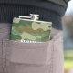 Personalized green army camouflage drink hip flask gift. Hunter camo color print with custom text, name or quote. Army / military / hunting theme. Cool prop gift idea for dad, husband, brother, friend, boss, colleague, soldier, groom, father, uncle, grandpa etc. Funny present for him. Great for Birthday, wedding party, Christmas etc. Add your own name or funny quote.