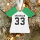 Celebrate your baseball star with this personalized green and white pinstripe jersey ornament. Perfect for commemorating a special season, player, or team. Customize it with a name and number to create a unique keepsake.