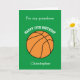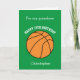 A green basketball birthday card, which you can easily personalize with his name and age if it's a different age. The inside reads a birthday message, which you can easily edit as well. You can personalize the back of this basketball birthday card with the year. Great for basketball lovers.