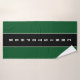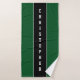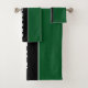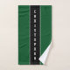 Stylish Dark Green Bath Towel Set with two thin white stripes and a wide vertical black stripe on the center with custom name on it.