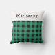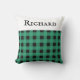 An elegant throw pillow patterned with a classic buffalo plaid design in green and black. The buffalo check cushion makes an attractive and useful gift for friends, family and colleagues, at Christmas and all year round. Click 'Personalize' to add the recipient's name to the design in black capital letters.
