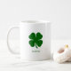 Simple Irish Four Leaf Clover Emerald Green Shamrock Design - Customize it with your own personalized names, words, colors! Celebrate good luck in style with this personalized Four Leaf Clover Design! Featuring a minimalist design with a simple yet modern touch, this mug can be customized with or without your name or favorite word. The vibrant emerald green color adds a fresh and bold look, while the elegant typography brings a sense of charm and uniqueness. Choose your preferred background color or leave it as is to keep the focus on the lucky clover. Whether you’re gifting it to a loved one or treating yourself, this mug makes every sip feel a little luckier!