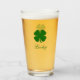 Simple Irish Four Leaf Clover Emerald Green Shamrock Beer Pint Glass - Customize it with your own personalized names, words, colors!