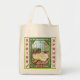 Handy tote bag for Easter Eggs, Gardening Tools, etc. features an original digital painting by Leslie Sigal Javorek of a whimsical scene through a mossy-green framed floral shop window of violets planted in a ceramic bunny planter. Flanked by 3 custom text fields that default to "Spring Has Sprung!!". #zazzlemade