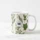 Enjoy your tea or coffee in botanical style with this printed mug, which features a pattern of green garden plants on a pale cream background. Personalize with an initial, which will appear on one side of the mug. The stylish mug is ideal for refreshments during and after a gardening session. An ideal gift for garden lovers.