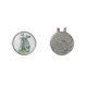 This personalized monogram golf hat clip and ball marker combo features a stylish sage green watercolor golf bag filled with clubs, sitting on a patch of green grass. The design includes a simple serif initial monogram placed right on the bag, making it feel like a natural part of the artwork. The letter is shown in a dark gray, almost black, to match the bag’s accents, but you can change it to any color you prefer.