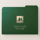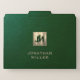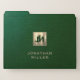 Keep your important documents organized and stylish with this personalized green leather print file folder featuring a classic block typography monogram in brushed metallic gold. The center emblem adds a touch of sophistication, while the customizable text below allows you to add your name or custom text. Ideal for professionals and students alike.