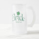 You can personalise this frosted emerald green 4 leaf clover shamrocks Bride beer stein with a name, wedding date, or other text. If you need assistance, please email niteowlstudio@gmail.com.