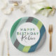 Personalized Green Striped Letters Birthday Party Paper Plates