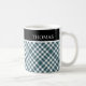 Modern green and white gingham pattern coffee mug you can easily personalize with your name in modern white typography against a black background. Perfect as a personalized Holiday or Birthday gift for him. Buffalo plaid, check or checkered pattern. If you need any help or matching products, please contact us at happydolpinstudio@outlook.com. Exclusively designed for you by Happy Dolphin Studio.