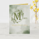 This is a beautiful Mother's Day card with a greenery theme. The background is a lovely green watercolor design with floral decorative typography. The card features a large letter "M" in green on a sage background. The words "Mom" in green and "Happy Mother's Day" in gold are also included. You can customize the greetings, photo, and background to suit the occasion.