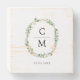 This custom wooden wedding box features a refined botanical wreath monogram design—perfect for rustic or minimalist weddings. Personalize with initials and a wedding date to create a keepsake box that adds elegance to your décor and stores cherished memories for years to come.