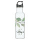 This personalized water bottle is decorated with botanical watercolor foliage in shades of green.
