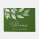 This unique personalized welcome doormat is decorated with watercolor greenery and says Welcome in stylish script typography.