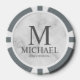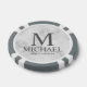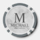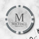 featuring personalized monogram, groomsman's name and title in grey classic serif font style on white marble background.