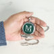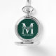 featuring personalized groomsman's monogram, name and title in white classic serif font style on emerald green background.