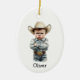 Personalized Grumpy Cowboy in Denim Outfit Ceramic Ornament