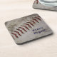 Set of 6 coasters featuring a close up photo of a worn grungy baseball and it's stitching. Personalize for free with your name or any wording you prefer. A great gift idea for coaches, players or any sports enthusiast! Durable plastic coating with a non-slip cork backing.