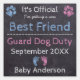 Congratulations! Let your best dog and newly appointed guard dog announce your pregnancy and the news of his new best friend with this chalkboard photo prop and pregnancy announcement sign. “It’s official, I’m getting a new Best Friend…Guard Dog Duty begins…Your Month/Date 20xx, Baby Last Name. This adorable dog pregnancy announcement photo prop is prefect to take you pregnancy photo and send to family and friends for the cutest pregnancy announcement. COPYRIGHT © 2020 Judy Burrows, Black Dog Art - All Rights Reserved. Personalized Guard Dog Duty Pregnancy Announcement Sign