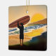 Personalized Guy on Beach with Surf Board Sunset Ceramic Ornament