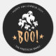 This Halloween round sticker template features a ghost ornament and "Boo" lettering. You can easily personalize these stickers with your name or a custom message.