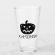 Personalized Halloween party drinking glasses. Spooky design with pumpkin head carving and scary typography template. Custom jack o lantern carved pumpkin face logo.