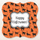 Personalized Halloween Party Orange Black Cat Paper Coaster