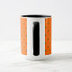 Funny Halloween mug featuring flying witch on orange polka dot background.