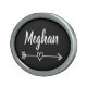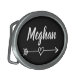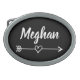 Personalized handlettered belt buckle for women. Custom name metal beltbuckles with heart arrow and stylish brush script handlettering template. Beautiful Birthday or Christmas gift idea for her. Add your own name or monogram initial letters. Black and white chalkboard style design. Elegant handwritten typography. Oval or rectangular shape.