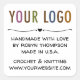 Personalize our "handmade with love" stickers by MISOOK with your business logo, product country of origin, and other custom text (you can customize the tagline to your preferred text such as "handcrafted by..." etc.). These are professional scratch resistant stickers printed on acid-free paper. Custom logo stickers can be used as product labels. The smaller 1.5 inch stickers can be used as packaging seals. Available in a glossy or matte finish in size 3 inch and 1.5 inch. Low minimum order quantity and no setup fee.