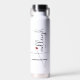 A handwritten style script name personalized water bottle for your bridesmaids, with a cute little red heart interacting with the typography. You may use the design tool to click on the heart and move it around to suit your own aesthetic for this design, or leave it as is.