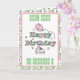 Happy Birthday card. Pastel sage green and coral pink colors hand drawn birthday cake and balloon. Add a name and age in personalize area.