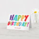 A bright and bold modern design to say happy birthday. This striking card is suitable for any age - and can be personalized with a name and message.