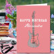 Electric guitar art with pink highlighting. Any guitarist or musician will tell you that you can never have to many guitars. This cool guitar birthday card, ideal for a teenage girl, celebrates the energy and variety of this wonderful musical instrument. The perfect customizable birthday card for guitarists, musicians and music lovers. Black and white with pink highlighting guitar art by artist Catherine Sweetman