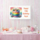 Cute personalized banner for a birthday, Add name and age in the personalize area. Graphics of a yummy rainbow cake.