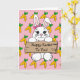 Personalized Happy Easter and Deviled Eggs Recipe Card. Just add your name in the customize area. Cute Easter Bunny with pink bow and carrots background.