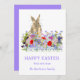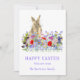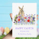 Personalized Happy Easter Cute Bunny Wildflowers Holiday Card