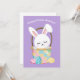 Customize this cute Happy Easter Bunny card with your own personalized text with your child's name in white script. This adorable bunny rabbit sits in a pretty Easter basket on a lovely purple card for children.