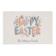 Create a beautiful Easter table setting with this personalized Happy Easter family placemat, featuring soft pastel lettering and delicate spring details. Customized with your family name, this laminated placemat is perfect for Easter brunch, dinner, and holiday gatherings. Easy to clean and reusable, it adds a festive and coordinated touch to your Easter table décor year after year.