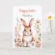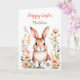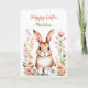 Sweet vintage bunny rabbit and flowers watercolor ai art. Pretty peach, coral, pink and sage green garden of flowers. Sweet Easter quote. Cute card for a child. Inside page is a coloring page. Personalized Easter card.