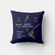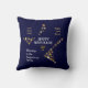 Stylish blue and gold personalized HANUKKAH throw pillow to wish your family and friends a Happy Hanukkah,. The design shows text that says HAPPY HANUKKAH in white typography at the center, with PEACE, LOVE & JOY in gold colored typography in one corner, and also written in HEBREW in the other corner. This is set against a background of gold-colored stars against midnight blue. The placeholder text is customizable, so you can create your own greeting and add your name(s). Other Hanukkah cards, home decor and gifts are available in the HANUKKAH Collection by Berean Designs.
