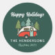 A customizable Christmas design with cozy and cute illustrations of camping and lake life. This item can be personalized with a family name and personal message or holiday greeting. Colors include traditional Christmas colors of green, red and white, as well as dark teal and mint green. A great holiday gift sticker for the nature lover, kids and adults who like outdoor activities such as camping, fishing, lake life.