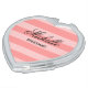 Personalized heart compact mirror for bridesmaid. Coral pink stripe pattern in cute heart shape design. Personalizable custom compact mirror with elegant script name. Custom gift idea for wedding favor / girls night out / bachelorette party / bridal shower. Great for stylish bride and chic bridesmaids.