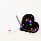 This cute notebook is heart shaped and features a cover with a pattern of colorful stars over a black background. The design is personalized with a space to enter a name. Great gift!