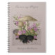 Use this beautiful notebook write that book, morning pages, poems or gratitude journal. Collage features vintage ephemera and hedgehogs wearing pink flowers in a woodland with mushrooms and flowers on a dusty rose background. Personalize this elegant writing notebook with your name and tile.