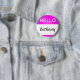 Sometimes that Hello My Name Is sticker is just not going to cut it, and you need a more permanent option. Well here is your very own Hello My Name Is round button pin in pink. One of the most recognizable name tags you have seen, customizable to your name. The eco-friendly option for social gatherings and meeting new people, because who can resist this classic tag.