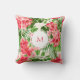 Personalized square pillow: Classy and fresh seamless pattern composed with red hibiscus flowers and leaves on white background. Custom Monogram included into round shape. Don't forget the whole collection.
